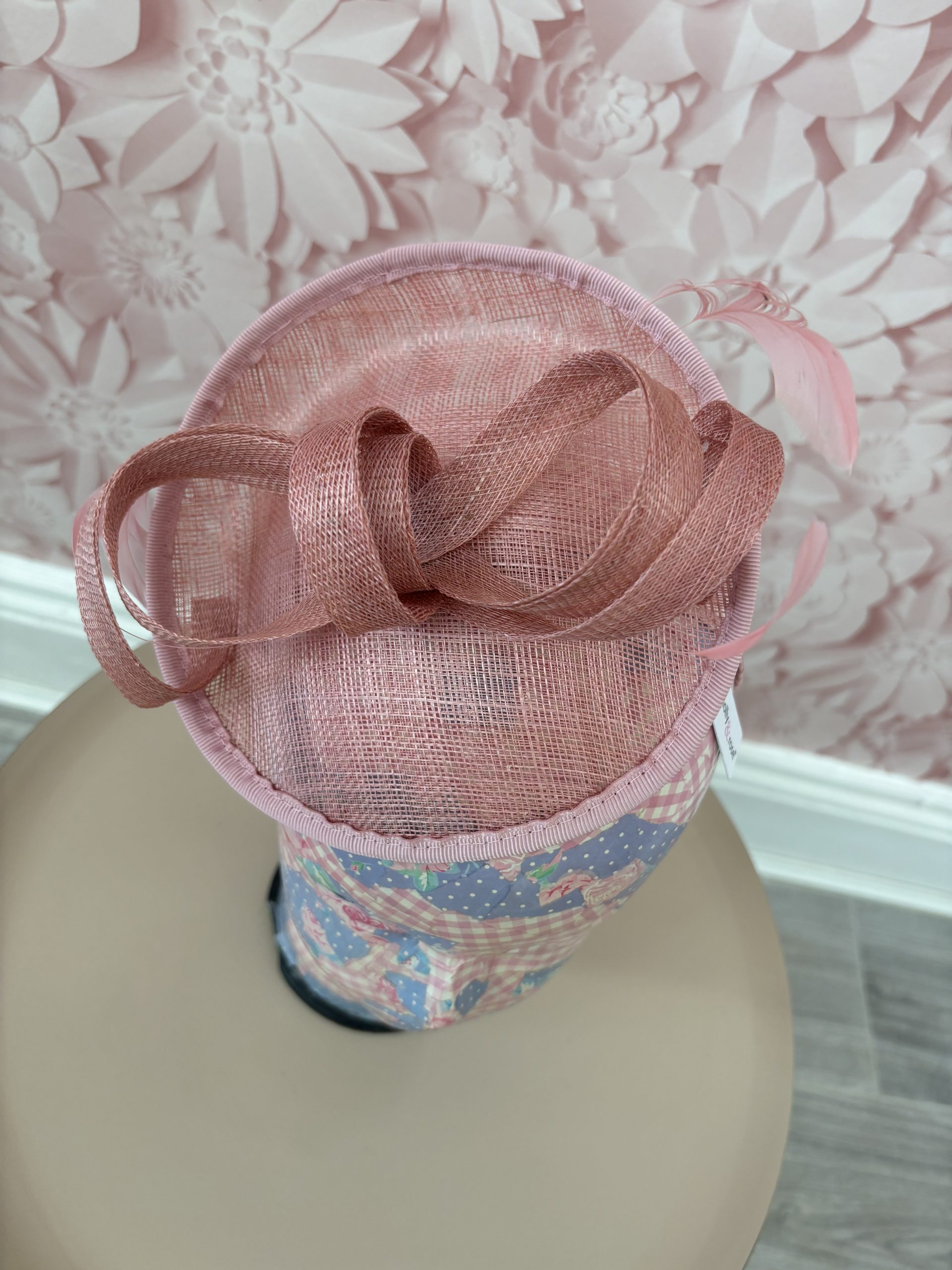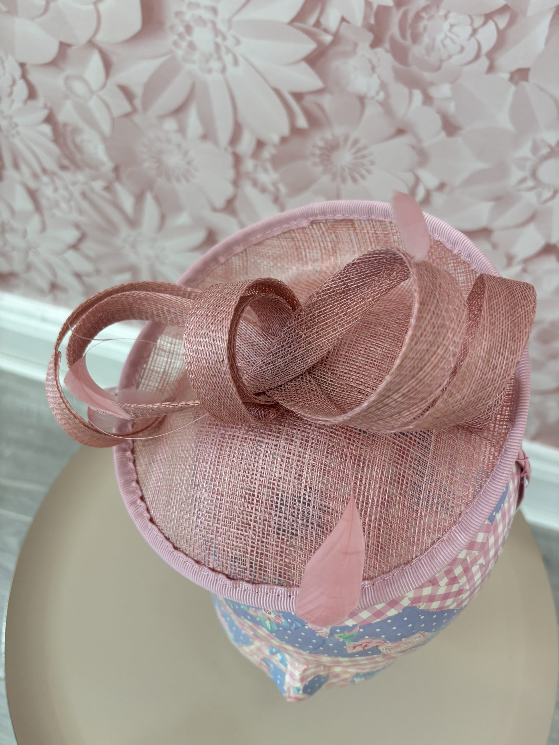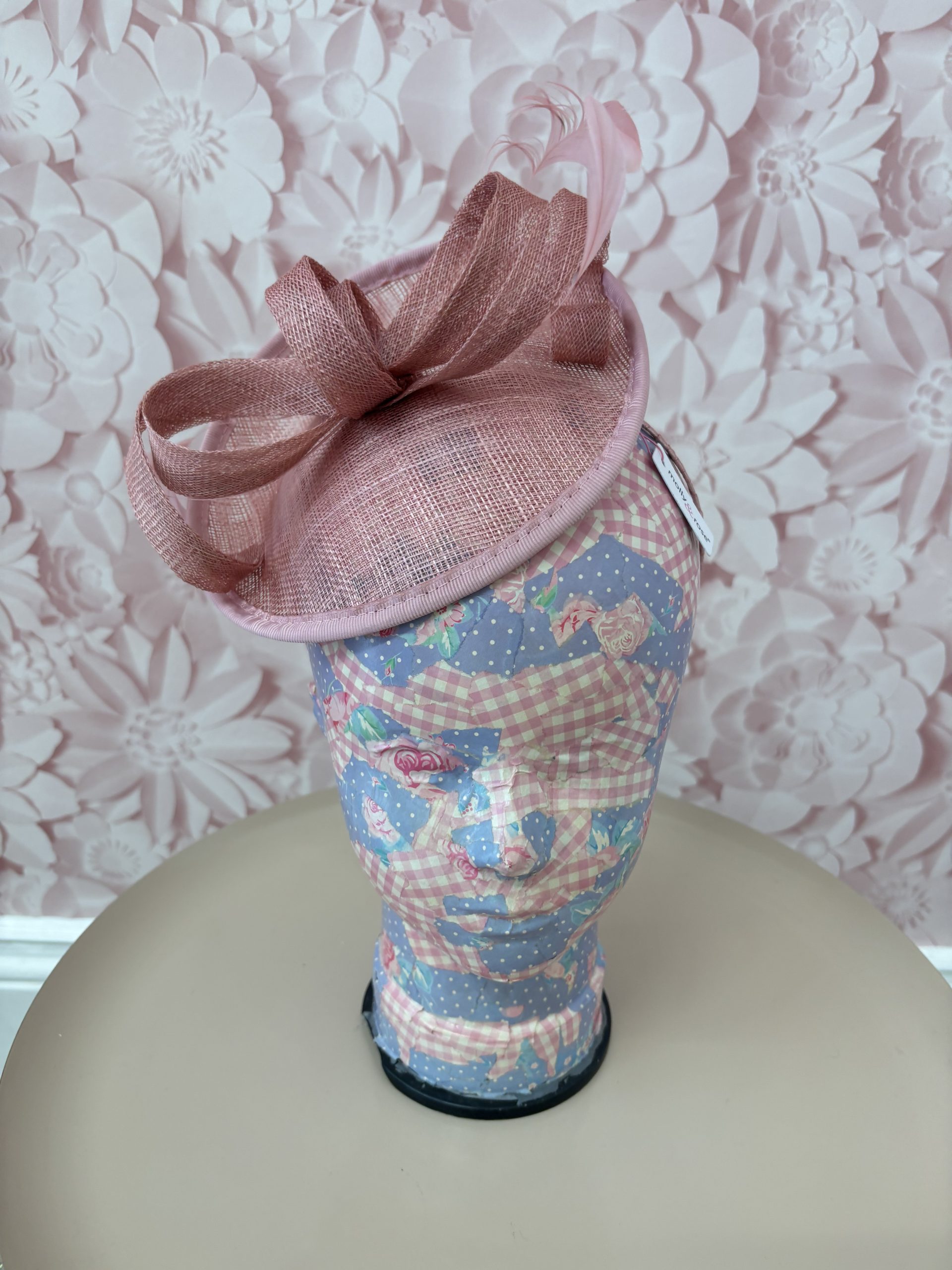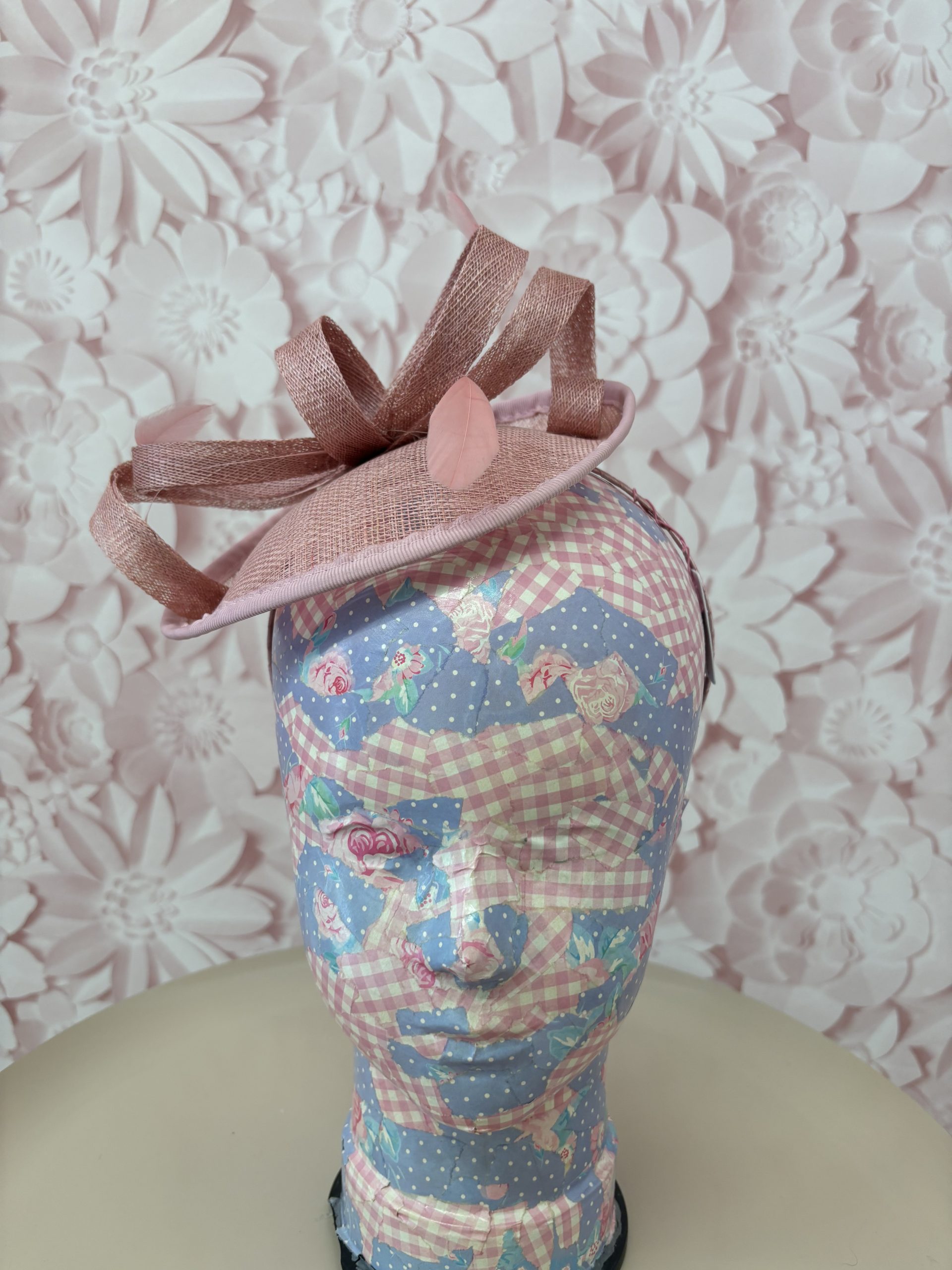 Elegant and feminine, this soft blush pink fascinator features a structured sinamay base with beautifully sculpted loop detailing for a refined and sophisticated finish. The delicate design creates gentle height and movement, making it a perfect choice for weddings and special occasions.